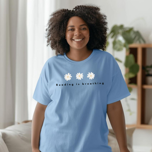 Reading is Breathing T-Shirt | Colorful Daisy Design for Book Lovers